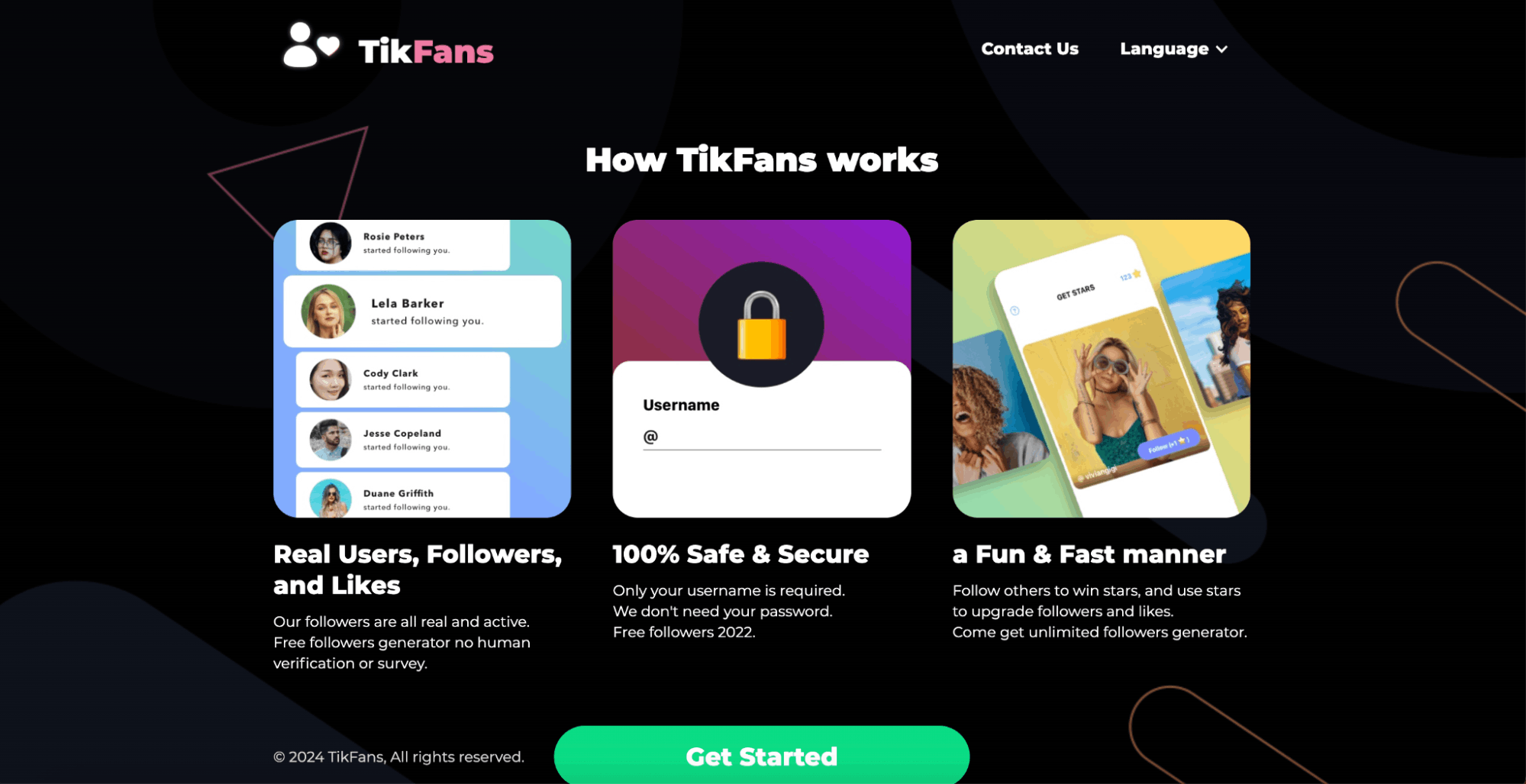 Tik Fans là một trang web miễn phí giúp bạn tăng tim và lượt theo dõi TikTok. Bạn có thể tích lũy "coin" để mua lượt tim và tăng mức độ tương tác cho video của mình.