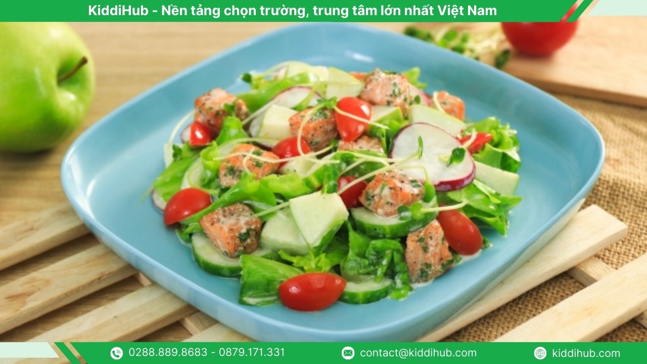Đối với những ai thích món tươi mát, salad bò rau mầm với thịt bò mềm ngọt kết hợp rau mầm hăng nhẹ sẽ là lựa chọn hoàn hảo. Salad cá hồi sốt sữa chua cũng không kém phần hấp dẫn, với thịt cá hồi mềm thơm, rau củ giòn ngọt cùng sốt mayonnaise béo ngậy, tạo nên món khai vị đầy chất lượng.