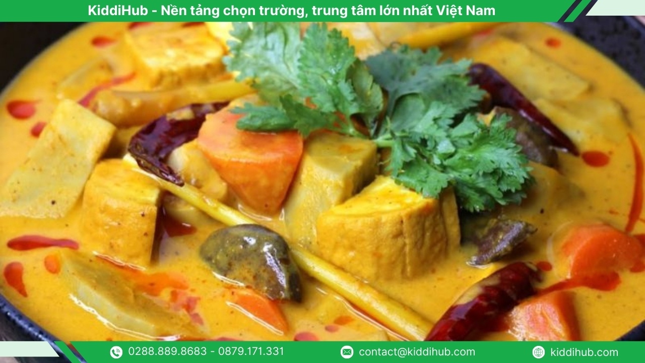 Cà ri chay là món ăn vừa thơm ngon, vừa dễ chế biến tại nhà. Nước sốt béo ngậy từ nước cốt dừa cùng vị ngọt tự nhiên của rau củ chín mềm tạo nên hương vị đặc trưng, hấp dẫn. Bạn có thể quết cùng bánh mì hoặc chan lên bún đều rất tuyệt, vừa ngon vừa ấm áp cho những ngày đầu năm.