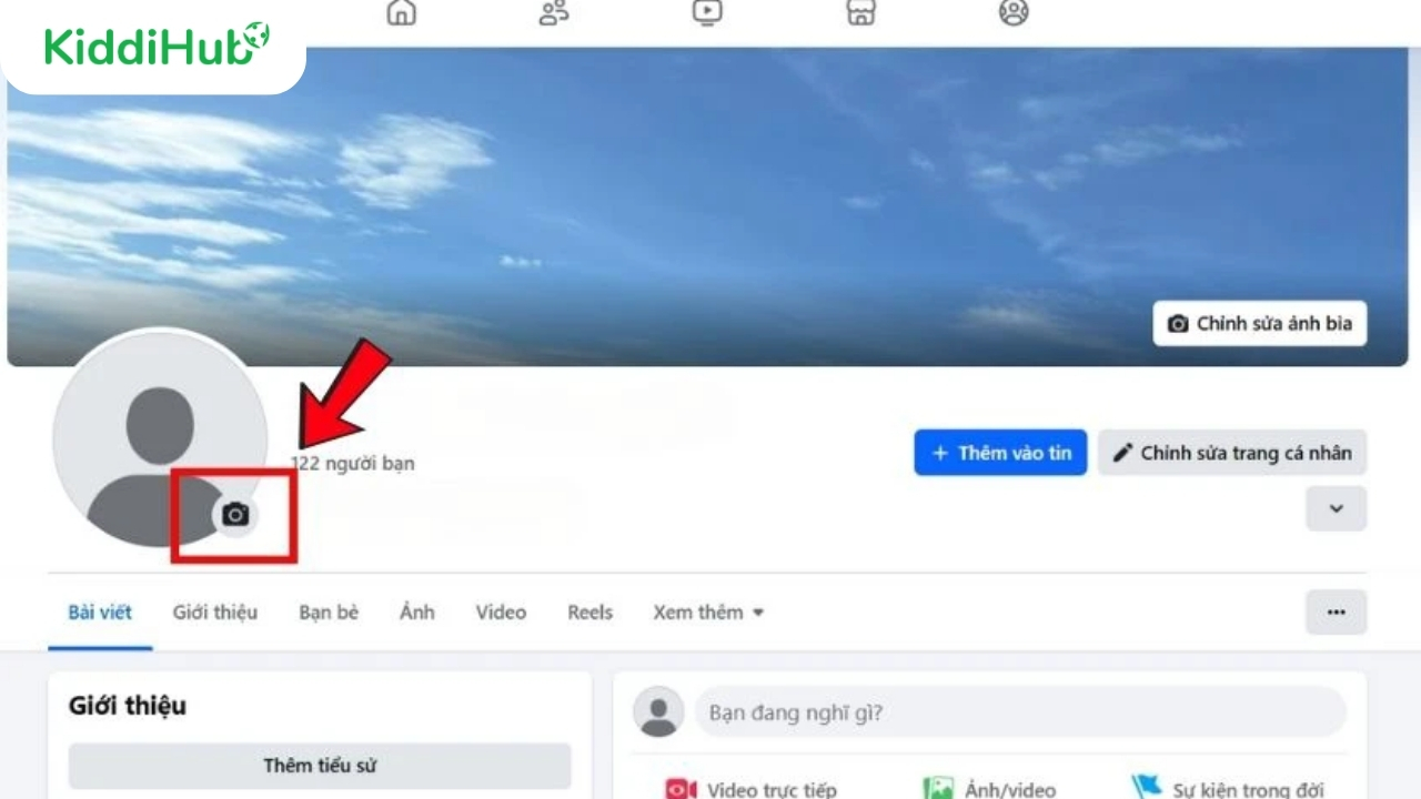 Bước 2: Mở ứng dụng Facebook, truy cập trang cá nhân, sau đó chạm vào biểu tượng máy ảnh tại vị trí ảnh đại diện để tiến hành thay đổi avatar mới.
