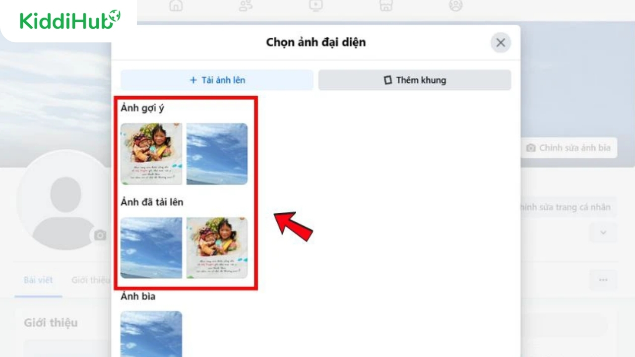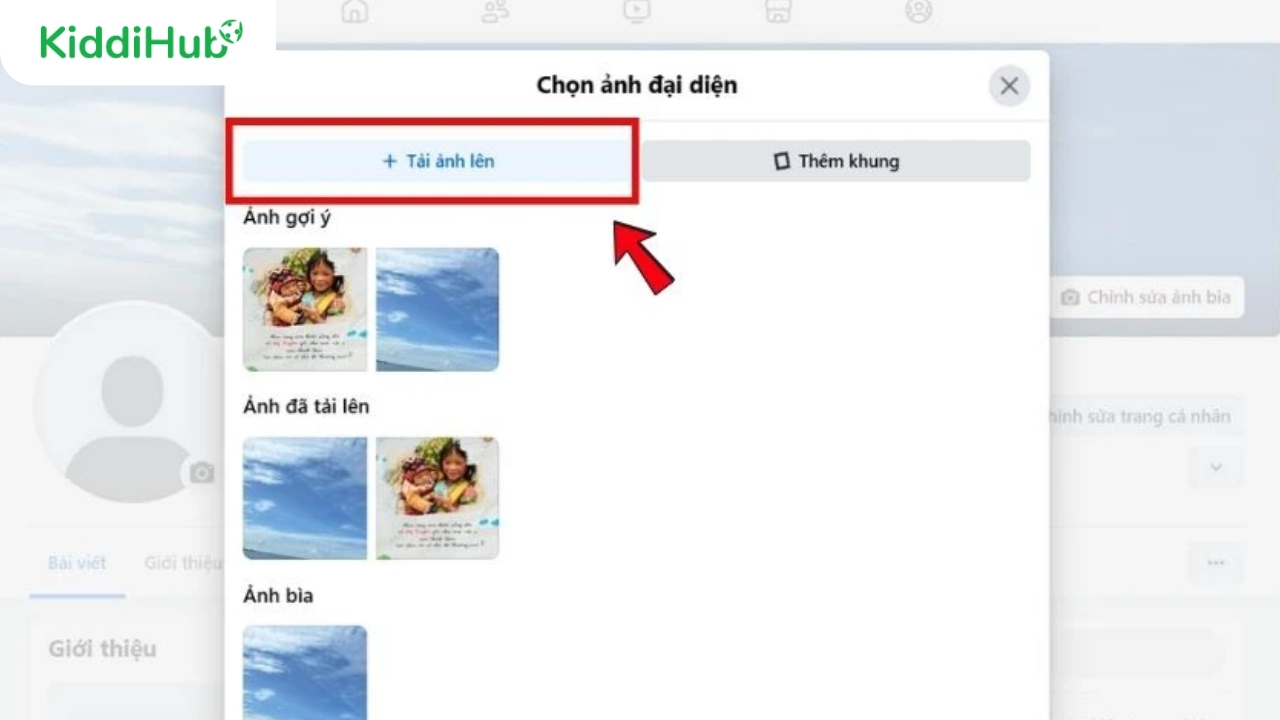 Bước 3: Tiếp theo, chọn mục Tải ảnh lên và chọn hình avatar 30/4 đã lưu trong thiết bị.