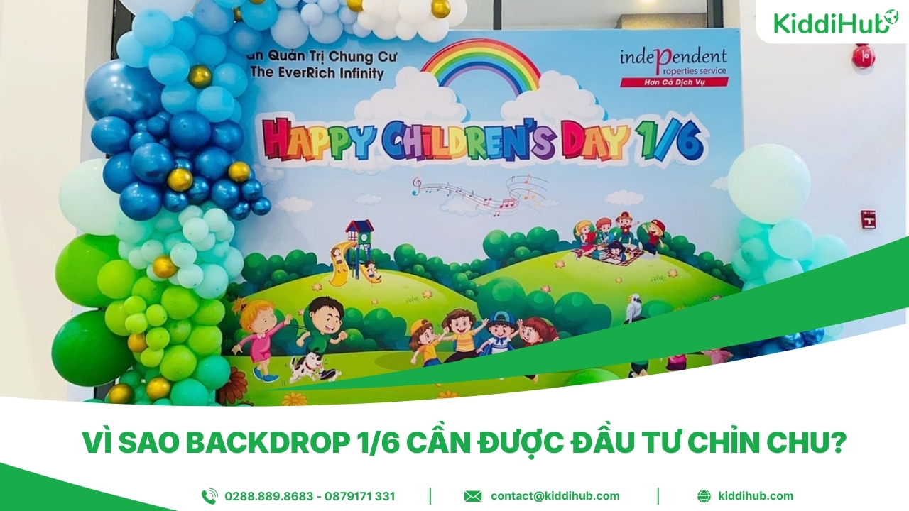 Backdrop 1/6 được đầu tư phù hợp sẽ giúp không gian tổ chức thêm sinh động, tạo cảm giác vui tươi và gần gũi với trẻ nhỏ. Việc lựa chọn màu sắc, hình ảnh và nội dung hài hòa không chỉ nâng cao trải nghiệm cho các bé mà còn góp phần làm nổi bật ý nghĩa của ngày Quốc tế Thiếu nhi, đồng thời lưu giữ nhiều khoảnh khắc đẹp trong ký ức tuổi thơ.