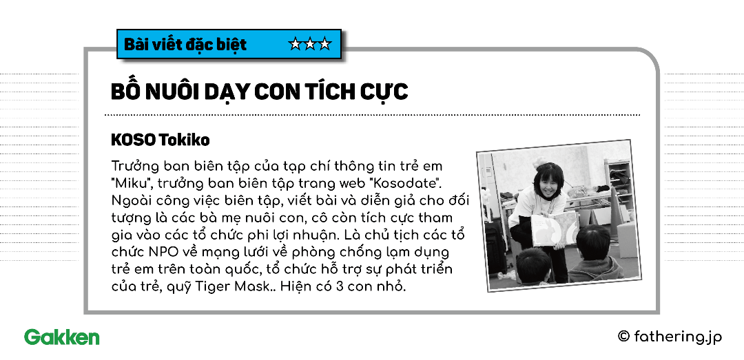“Bài giảng đặc biệt: Cách nuôi dạy con tích cực của bố” là nội dung độc quyền trong cuốn sách “Sách giáo khoa của ông bố mới (新しいパパの教科書)” của Tập đoàn Gakken Inc. Dưới đây là một số thông tin về tác giả và dịch giả tại Việt Nam của cuốn sách này:
