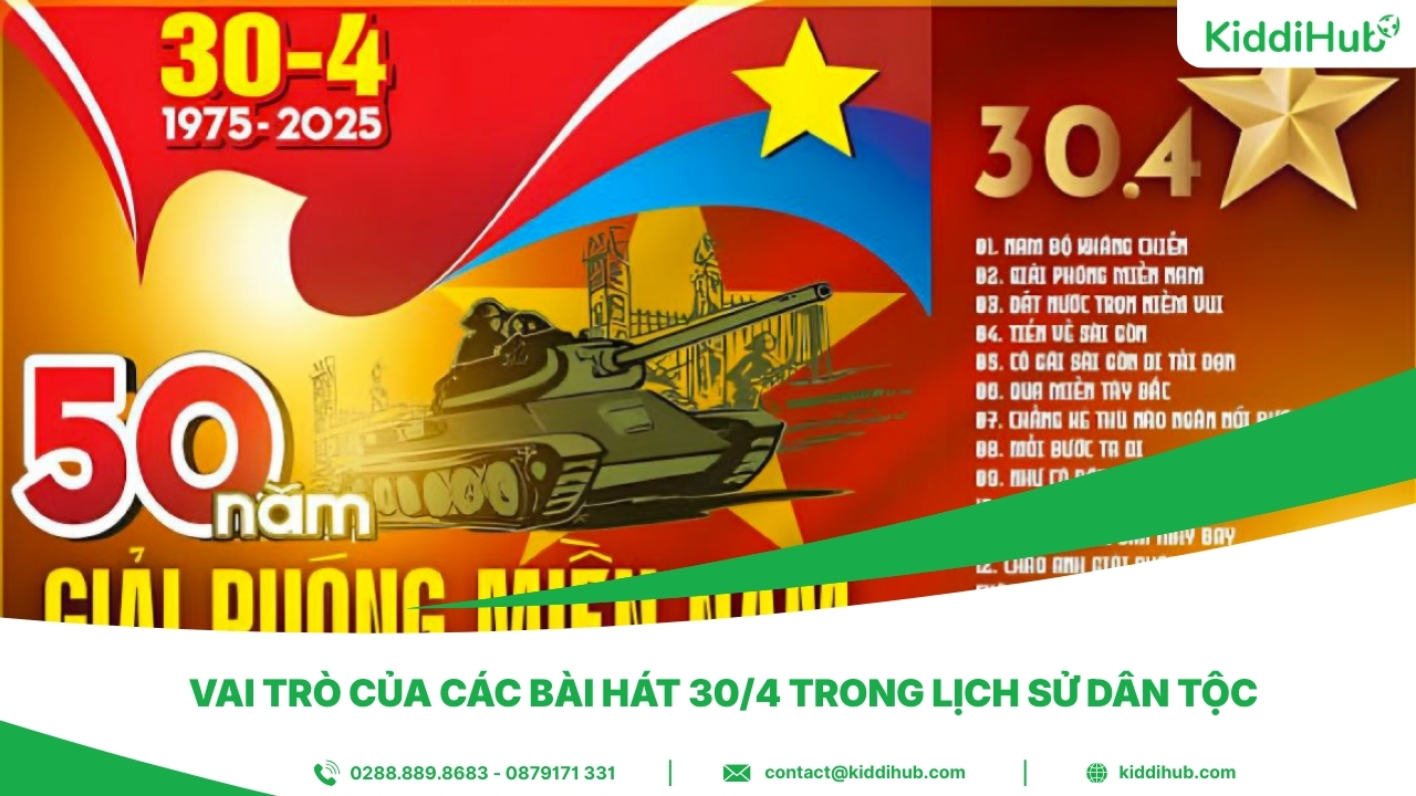 Mỗi dịp lễ 30/4, những giai điệu quen thuộc lại vang lên, khơi dậy niềm tự hào và ký ức lịch sử thiêng liêng của dân tộc. Không chỉ đơn thuần là âm nhạc, bài hát 30 4 còn là cầu nối đưa các thế hệ hôm nay trở về với thời khắc hào hùng của đất nước. Hãy cùng KiddiHub tìm hiểu ý nghĩa và giá trị đặc biệt ẩn sau những ca khúc này.