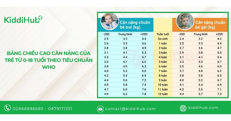 Bảng chiều cao cân nặng của trẻ từ 0-18 tuổi là công cụ quan trọng giúp cha mẹ theo dõi sự phát triển thể chất của con. Dựa trên tiêu chuẩn của Tổ chức Y tế Thế giới (WHO), bảng này cung cấp chỉ số tham chiếu về mức tăng trưởng bình thường, từ đó giúp phụ huynh phát hiện sớm dấu hiệu suy dinh dưỡng hoặc thừa cân để có biện pháp điều chỉnh kịp thời. Cùng Kiddihub tìm hiểu kĩ hơn về vấn đề này nhé!