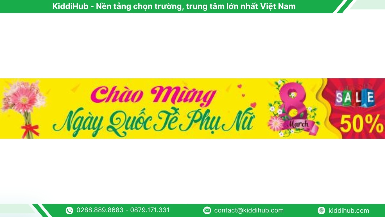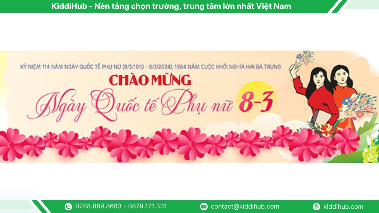 Những băng rôn 8/3 luôn là lựa chọn lý tưởng để trang trí và gửi gắm thông điệp tri ân phụ nữ trong ngày Quốc tế Phụ nữ. Với màu sắc tươi sáng, hình ảnh bắt mắt cùng nội dung ý nghĩa, băng rôn không chỉ làm nổi bật không gian sự kiện mà còn thu hút mọi ánh nhìn. Nếu bạn đang tìm kiếm ý tưởng thiết kế phù hợp cho trường học, doanh nghiệp hay các chương trình cộng đồng, trong bài viết này KiddiHub đã tổng hợp những gợi ý hữu ích để bạn tham khảo.