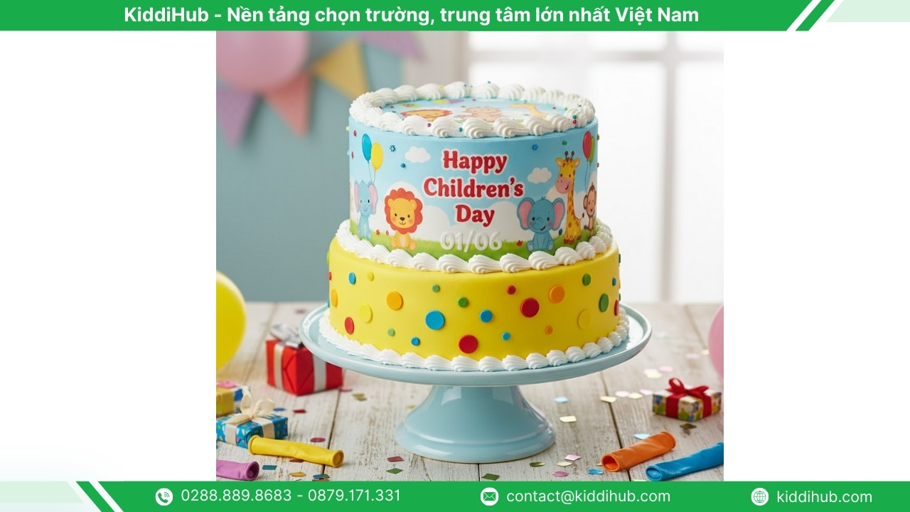 Hy vọng những thông tin và gợi ý trong bài viết sẽ giúp bố mẹ dễ dàng lựa chọn được mẫu bánh sinh nhật 1/6 phù hợp với sở thích và độ tuổi của bé. Một chiếc bánh đẹp, an toàn và vừa vặn sẽ góp phần mang đến cho con ngày Quốc tế Thiếu nhi thật vui vẻ và đáng nhớ.
