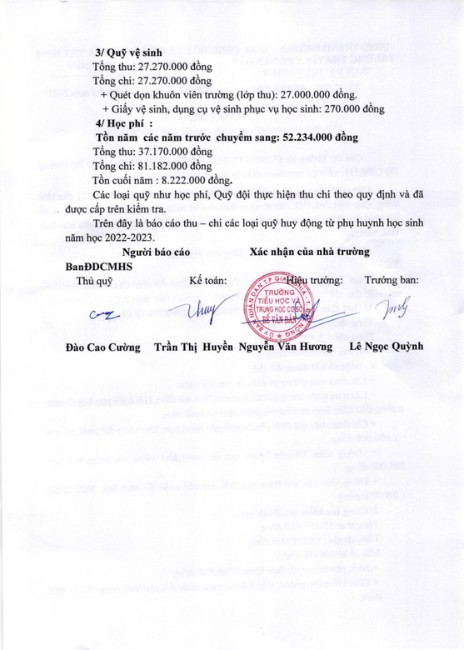 Việc quản lý và sử dụng quỹ phụ huynh một cách minh bạch, rõ ràng là yếu tố then chốt giúp xây dựng niềm tin giữa nhà trường và phụ huynh. Dưới đây là tổng hợp chi tiết các khoản thu vào, chi ra từ quỹ phụ huynh, nhằm đảm bảo công khai, đúng mục đích và hiệu quả trong từng hoạt động.