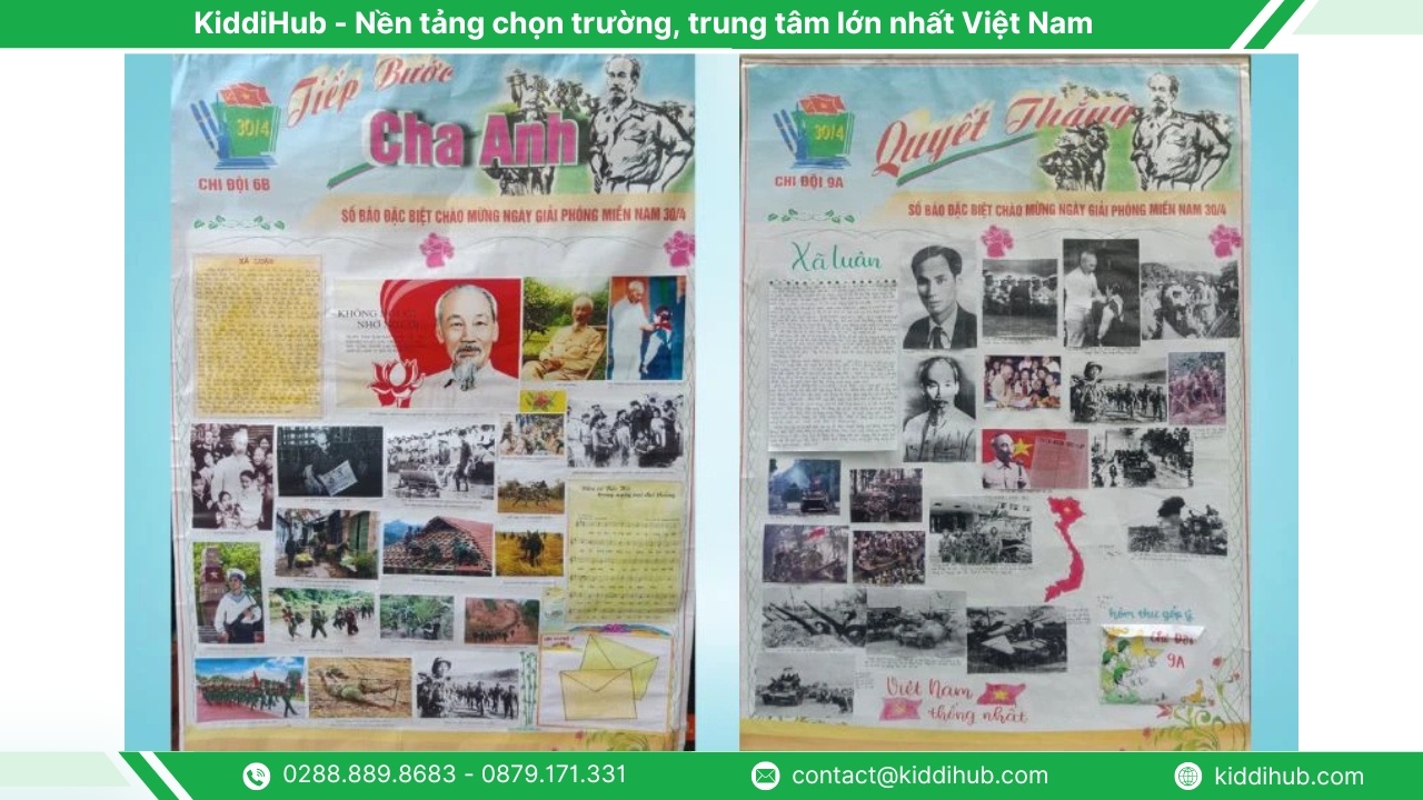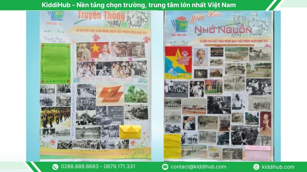 Hy vọng thông qua việc trang trí báo tường 30 4, học sinh sẽ hiểu sâu hơn giá trị của lịch sử, nuôi dưỡng lòng yêu nước và ý thức trân trọng hòa bình hôm nay. Mỗi trang báo không chỉ thể hiện sự sáng tạo mà còn gửi gắm cảm xúc và trách nhiệm của thế hệ trẻ với đất nước. KiddiHub mong rằng những chia sẻ trong bài viết sẽ giúp bạn có thêm ý tưởng để hoàn thiện báo tường ý nghĩa và phù hợp với môi trường học đường.