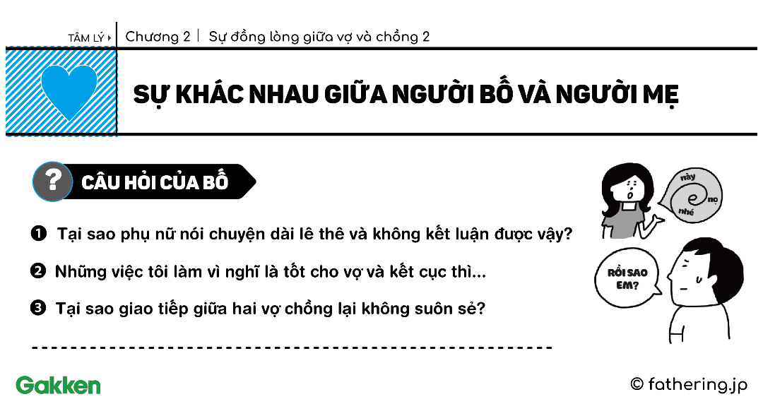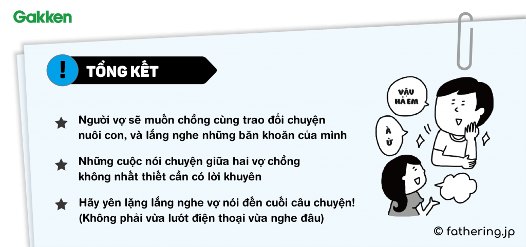 Các bạn đã từng chen vào khi vợ đang nói bằng cách "Thế cuối cùng là gì?", "Rốt cuộc em muốn nói gì vậy?" chưa? Dưới đây tôi sẽ đưa cho các bạn các chú ý quan trọng để không làm phát sinh những cú lệch pha trong giao tiếp vợ chồng nhé.