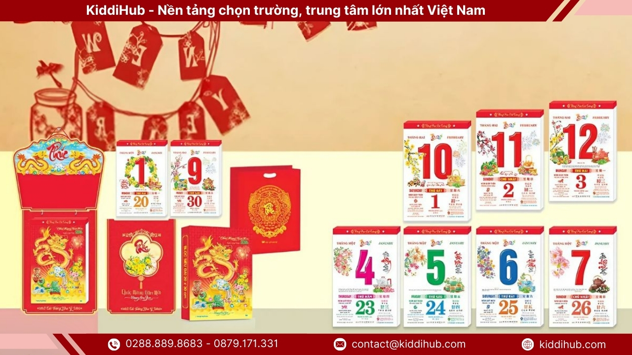 Lịch Tết vừa đẹp mắt, vừa tiện dụng, đồng hành cùng người nhận suốt cả năm. Doanh nghiệp có thể in logo và thông điệp chúc mừng, vừa quảng bá thương hiệu, vừa giúp nhân viên sắp xếp công việc và ghi nhớ các ngày quan trọng.