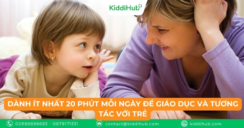 Một trong những phương pháp dạy con phổ biến ở Mỹ là dành ít nhất 20 phút mỗi ngày để giao tiếp và rèn luyện trẻ. Mặc dù chỉ vỏn vẹn 20 phút, nhưng đây là thời gian vô cùng quan trọng đối với sự phát triển của trẻ.