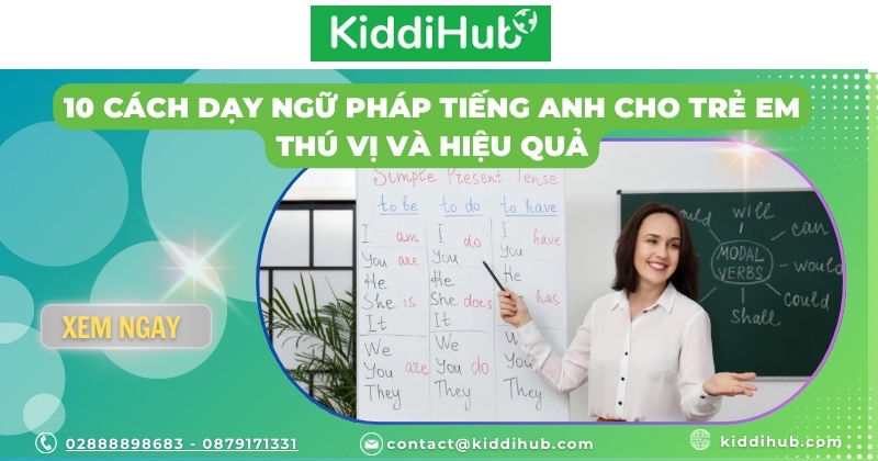 Ngữ pháp là nền tảng quan trọng giúp trẻ sử dụng tiếng Anh đúng và tự nhiên. Tuy nhiên, việc học ngữ pháp không nên quá khô khan hay áp lực. Vì vậy, cách dạy ngữ pháp tiếng Anh cho trẻ em cần được thiết kế sinh động, dễ hiểu thông qua trò chơi, bài hát, truyện kể và các tình huống thực tế. Bằng phương pháp phù hợp, trẻ sẽ tiếp thu nhanh và ghi nhớ lâu hơn. Cùng Kiddihub tìm hiểu thêm về các cách dạy này nhé!