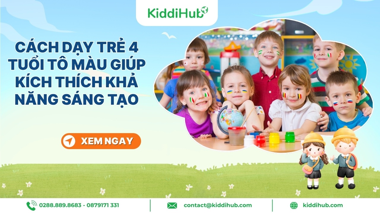 Việc dạy trẻ 4 tuổi tô màu không chỉ là hoạt động vui chơi, mà còn là cơ hội tuyệt vời để phát triển tư duy, cảm xúc và khả năng sáng tạo ngay từ những năm đầu đời. Với những cách đơn giản, gần gũi mà hiệu quả, ba mẹ hoàn toàn có thể cùng bé khám phá thế giới sắc màu một cách hứng thú và tự nhiên nhất. KiddiHub tin rằng, khi được khơi dậy đúng cách, mỗi nét vẽ của trẻ sẽ là một mầm sáng tạo được nuôi dưỡng mỗi ngày. Cách dạy trẻ 4 tuổi tô màu đơn giản nhất - khơi dậy sự sáng tạo cho trẻ chính là bước khởi đầu để con phát triển toàn diện trong hành trình trưởng thành.