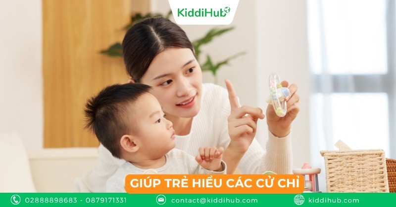 Đưa ra gợi ý giúp trẻ thực hiện hành động, có thể qua việc chỉ dẫn bằng tay hoặc dùng lời nói, tạo cơ hội để trẻ thực hiện điều mình mong muốn. Điều quan trọng là duy trì một không khí vui vẻ, thân thiện trong suốt quá trình giao tiếp, giúp trẻ cảm thấy thích thú và duy trì sự chú ý để tiếp tục học hỏi và tương tác với mọi người.