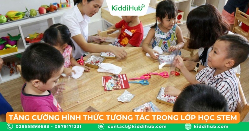 Một yếu tố quan trọng không thể thiếu trong cách soạn giáo án STEM là xây dựng các hoạt động tương tác đa dạng nhằm tăng cường sự tham gia của học sinh. Giáo viên có thể tổ chức các buổi làm việc nhóm, đóng vai xử lý tình huống, trình bày sản phẩm, khám phá qua chuyến đi thực tế ảo, hay thảo luận mở. Khi học sinh được trực tiếp trải nghiệm, trao đổi và trình bày ý tưởng, không chỉ giúp nâng cao hiệu quả học tập mà còn góp phần phát triển kỹ năng mềm như giao tiếp, hợp tác và tư duy phản biện. Từ đó, lớp học STEM trở nên sinh động, thực tiễn và gần gũi hơn với cuộc sống.