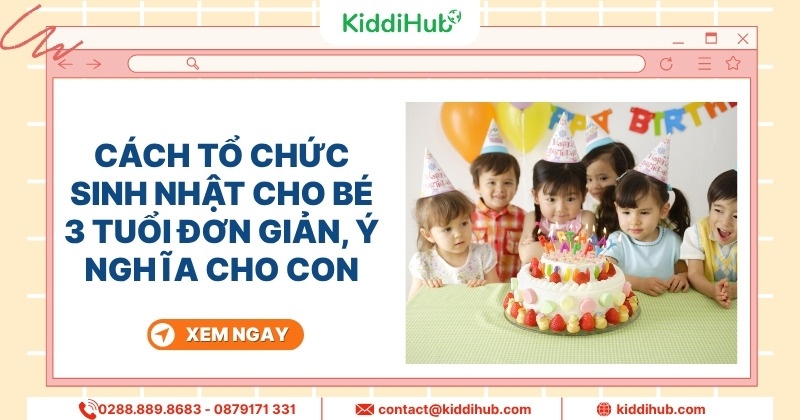 Sinh nhật 3 tuổi không chỉ là dấu ấn đáng nhớ trong hành trình không lớn của bé mà còn là dịp để cả gia đình gắn kết yêu thương. Nếu bạn đang tìm cách tổ chức sinh nhật cho bé 3 tuổi thật vui vẻ, ý nghĩa và phù hợp với nghiên cứu thì đừng bỏ qua những mẹo ý siêu dễ thương, tiết kiệm nhưng vẫn tạo ra bé cười tít mắt dưới đây! Cùng KiddiHub biến ngày đặc biệt ấy thành kỷ niệm ngọt ngào cho cả nhà nhé!