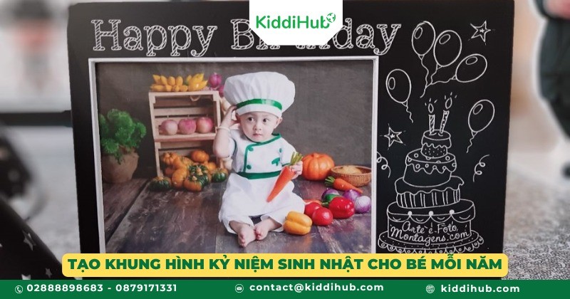 Nếu bạn không muốn tổ chức một bữa tiệc quá phức tạp, một ý tưởng tuyệt vời là tạo ra những khung hình sinh nhật dễ thương treo tường để làm món quà đặc biệt dành tặng bé. Bạn có thể gắn vào đó những bức ảnh dễ thương, ngộ nghĩnh của bé qua từng năm tháng, từ những ngày đầu đời cho đến sinh nhật năm nay.