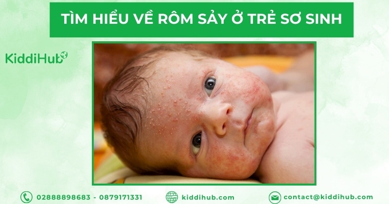 Rôm sảy là hiện tượng da bị kích ứng do nhiệt độ cao và độ ẩm tăng, khiến các mao mạch dưới da giãn nở, tạo điều kiện cho vi khuẩn xâm nhập và gây ra mụn rôm. Tình trạng này thường gặp ở trẻ sơ sinh vì làn da mỏng manh, cấu trúc da lỏng lẻo, khiến bé dễ bị ảnh hưởng.