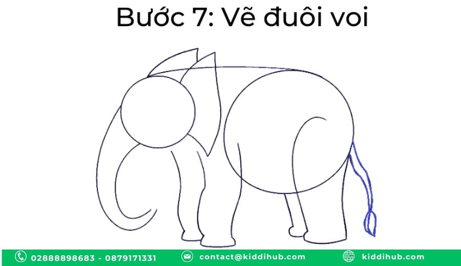 Bước 6: Vẽ đuôi voi ngộ nghĩnh