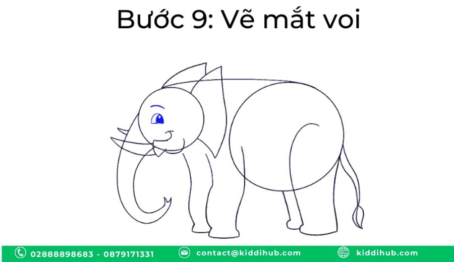 Cuối cùng, thêm đôi mắt tròn xoe để hoàn thiện gương mặt sinh động của voi.
