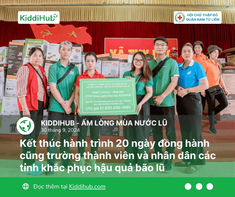 Kết thúc hành trình 20 ngày đồng hành cũng trường thành viên và nhân dân các tỉnh khắc phục hậu quả bão lũ, KiddiHub cập nhật các hoạt động đợt 3 như sau: