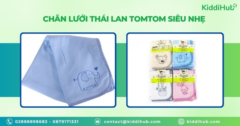 Chăn lưới TomTom là lựa chọn tuyệt vời nhờ được làm hoàn toàn từ cotton 100%, tạo cảm giác mềm mại, thoáng mát và rất nhẹ. Cấu trúc vải đan dạng mắt lưới giúp tăng khả năng thoáng khí và hút ẩm hiệu quả, tránh bé bị bí nóng hoặc ngạt khi ngủ. Thiết kế hai lớp tiện lợi vừa làm chăn ủ, vừa có thể dùng làm chăn đắp, sử dụng quanh năm rất tiện dụng. Chăn có nhiều họa tiết dễ thương, màu sắc tươi sáng, viền bo chắc chắn, tạo điểm nhấn thu hút các mẹ và bé.