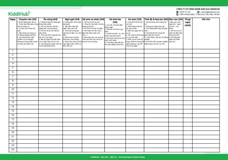 Lưu ý: Mỗi nhóm chỉ nên có 3–5 tiêu chí để dễ chấm và dễ theo dõi.