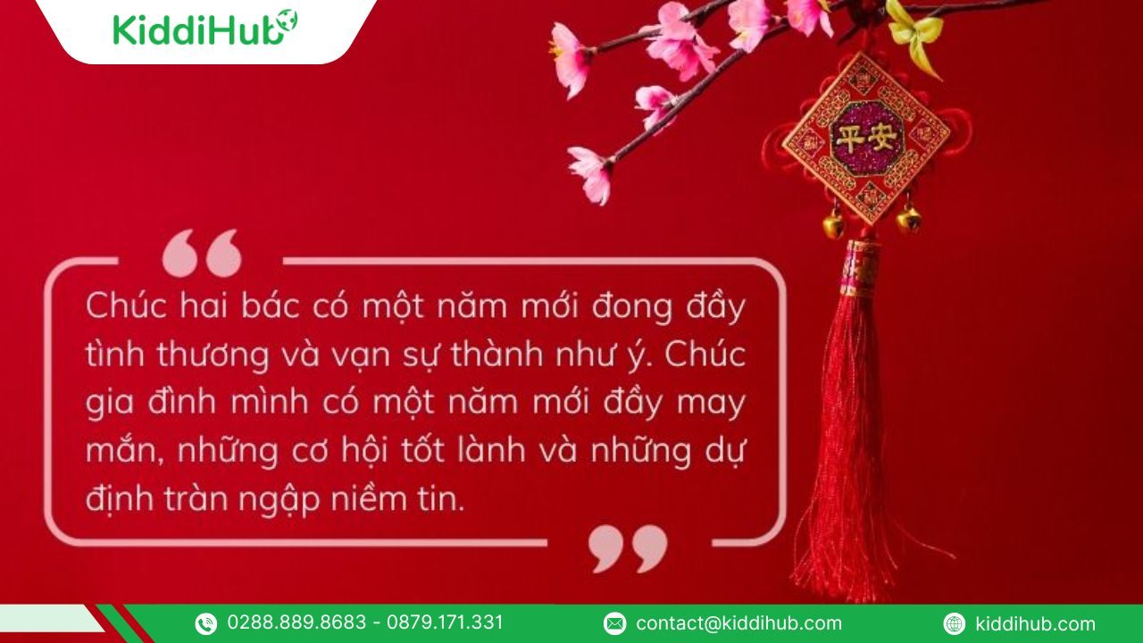 Năm mới, cháu chúc hai bác: Hạnh phúc tràn đầy, tài lộc viên mãn, an khang thịnh vượng.