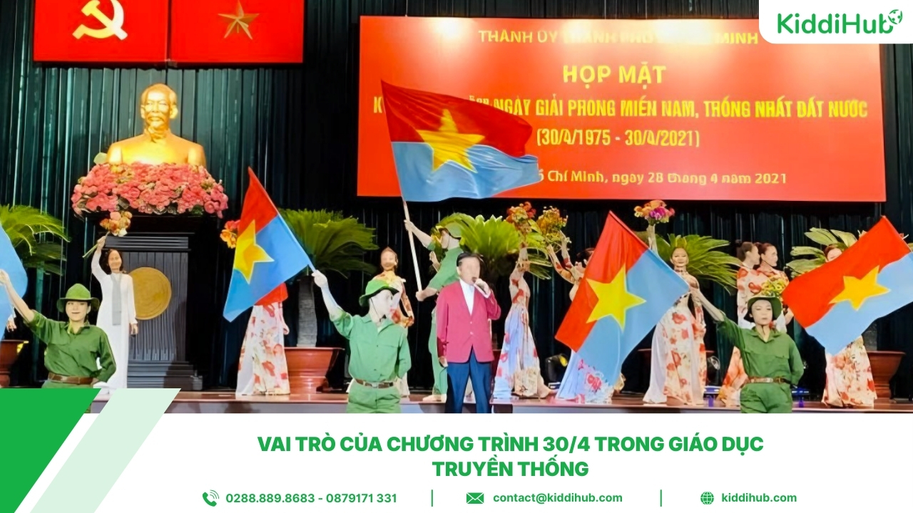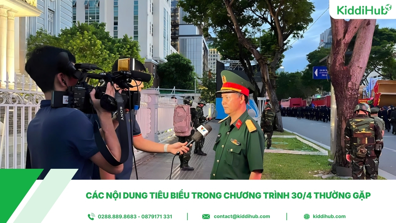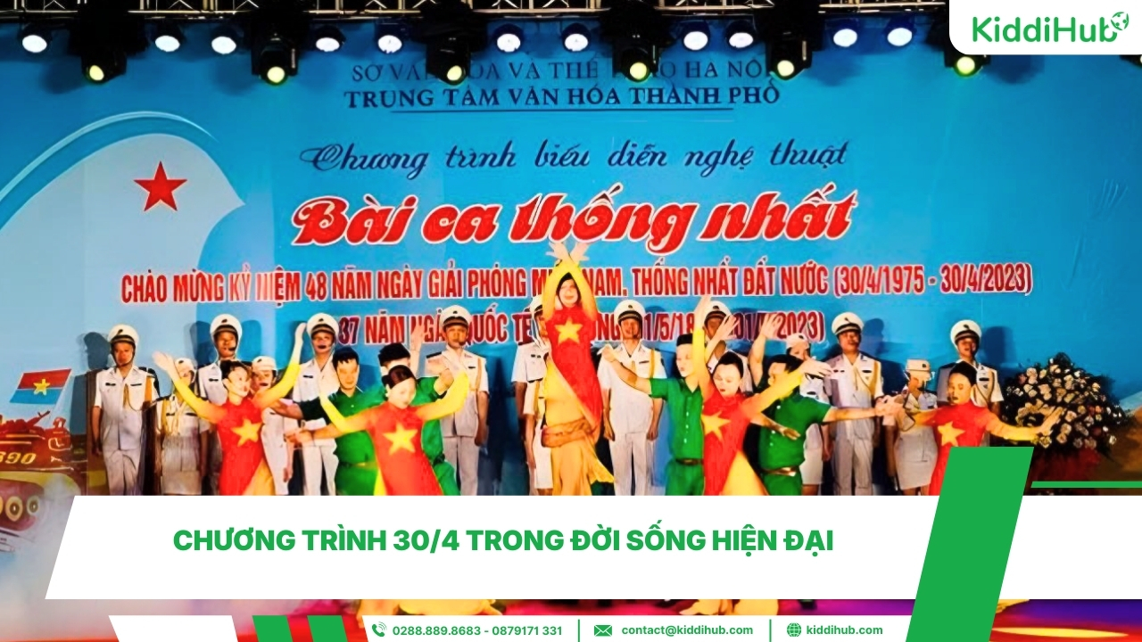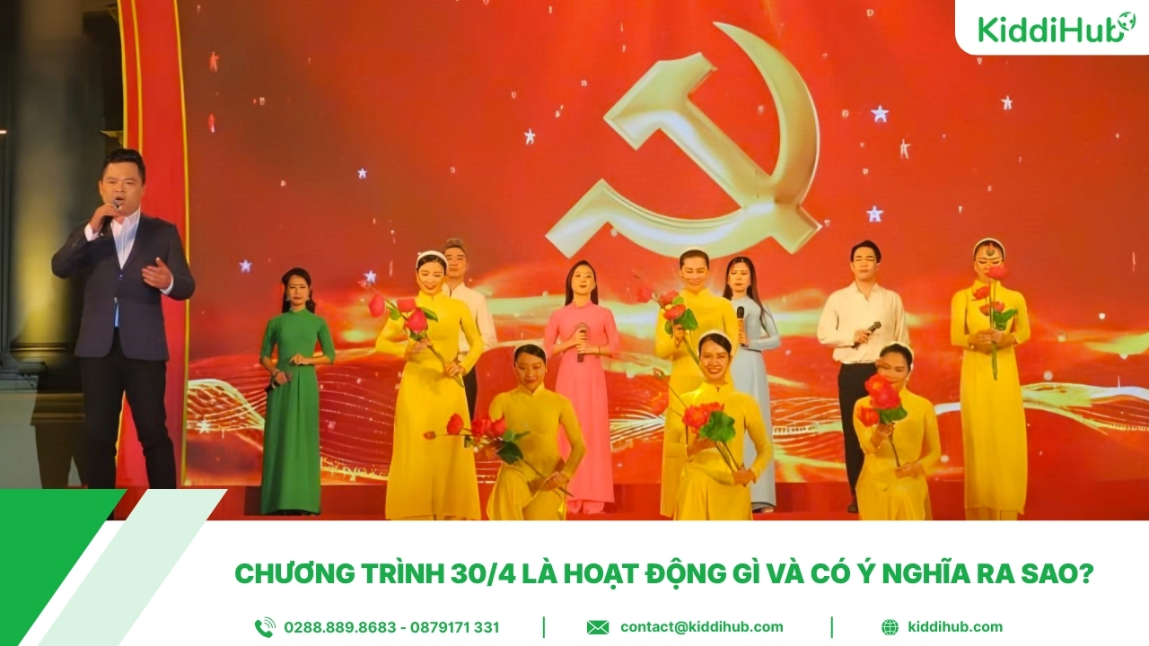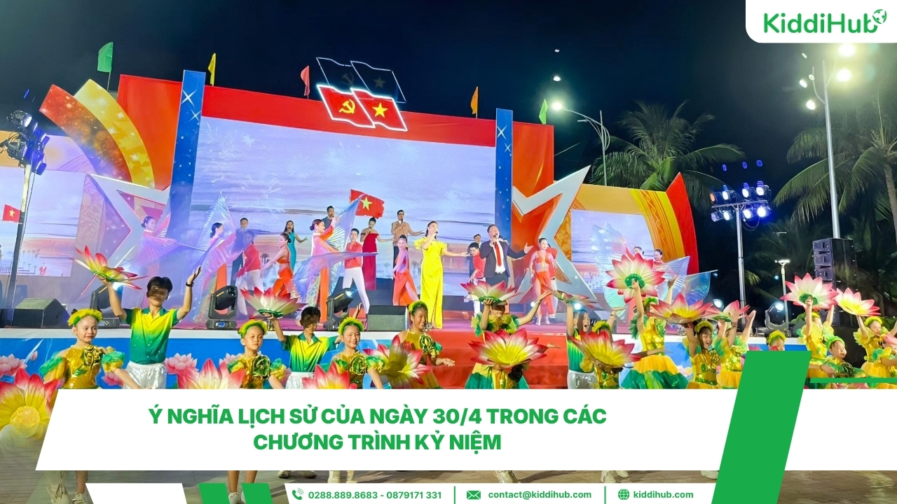 Không khí tháng Tư lịch sử luôn được tái hiện sinh động qua các chương trình 30 4 diễn ra trên khắp cả nước, từ trường học, cơ quan đến cộng đồng dân cư. Mỗi hoạt động không chỉ mang ý nghĩa kỷ niệm mà còn góp phần giáo dục truyền thống, bồi đắp lòng yêu nước cho nhiều thế hệ. Hãy cùng KiddiHub tìm hiểu những nội dung tiêu biểu và giá trị nổi bật của các chương trình ý nghĩa này.