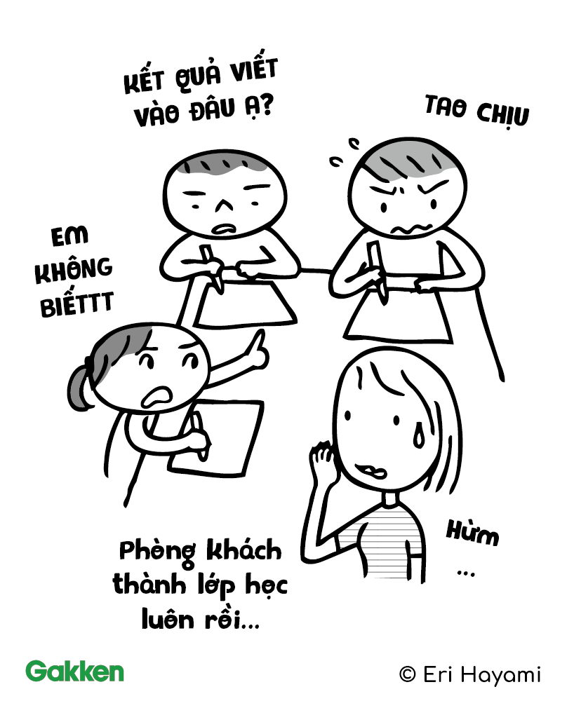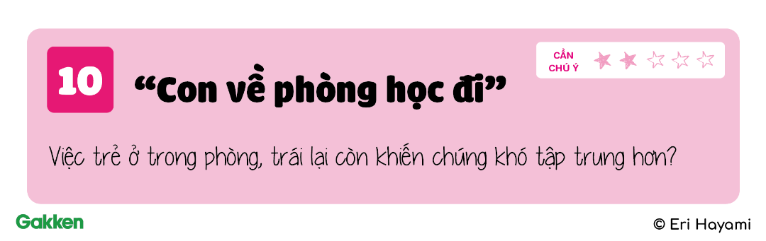Con tôi có phòng riêng nhưng thường làm bài tập ở phòng khách hoặc phòng bếp. Tôi nghĩ con sẽ không tập trung được, và nói "Con về phòng học đi", nhưng...