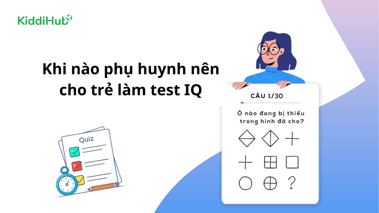 Trẻ từ 3–4 tuổi có thể làm các bài test đơn giản. Độ tuổi cho kết quả IQ rõ ràng nhất là từ 6–12 tuổi. Phụ huynh nên test IQ cho bé định kỳ 1–2 năm một lần để theo dõi sự phát triển trí tuệ.