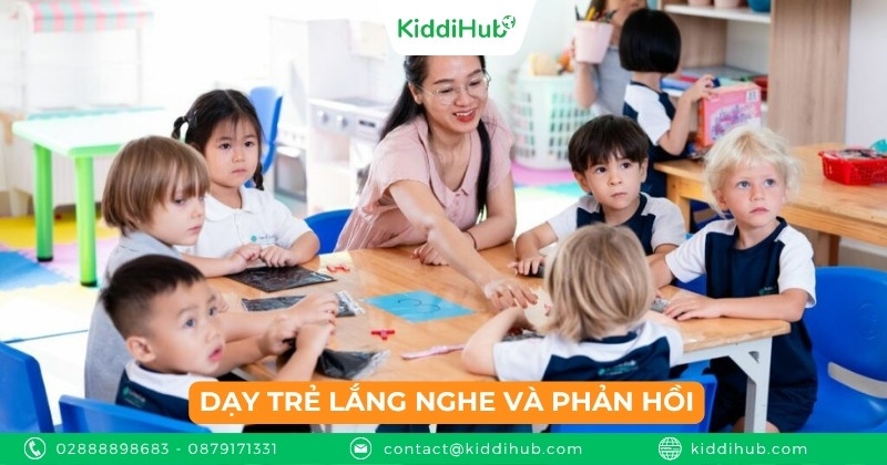 Một trong những phương pháp quan trọng giúp phát triển kỹ năng giao tiếp cho trẻ mầm non là dạy trẻ biết lắng nghe và phản hồi một cách phù hợp. Trẻ cần được hướng dẫn cách tập trung chú ý vào người đang nói, duy trì giao tiếp bằng ánh mắt và kiên nhẫn chờ đến lượt mình để trả lời, thay vì ngắt lời hay nói chen.