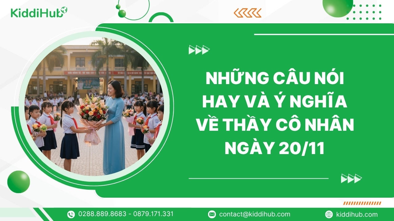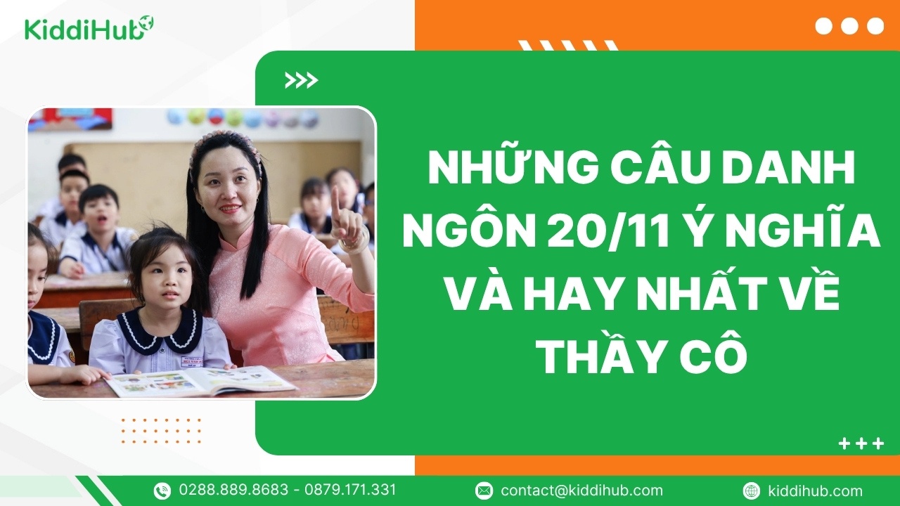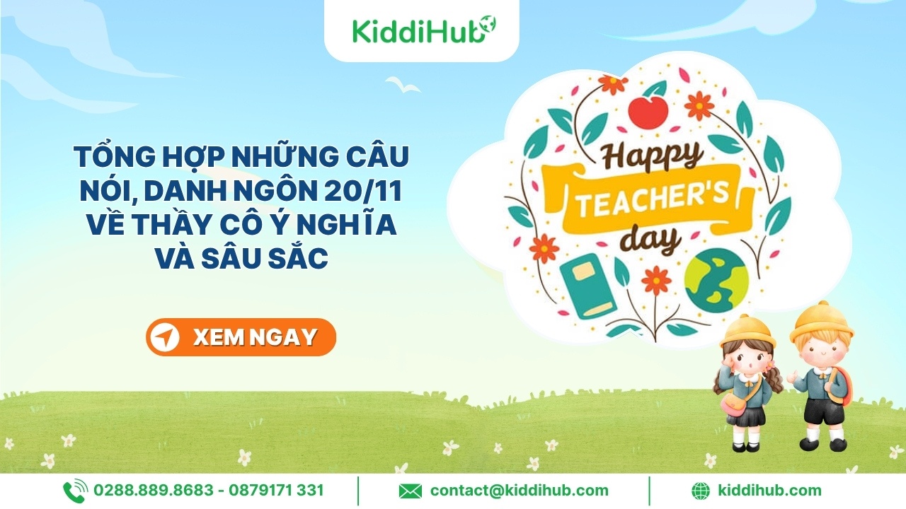 Ngày Nhà giáo Việt Nam 20/11 là dịp để chúng ta bày tỏ lòng biết ơn chân thành đối với những người thầy, người cô đã tận tâm dìu dắt, truyền dạy tri thức và nuôi dưỡng ước mơ cho bao thế hệ học trò. Bên cạnh những món quà hay lời chúc, những câu nói đầy triết lý và danh ngôn sâu sắc về thầy cô luôn mang giá trị tinh thần lớn lao. Trong bài viết này, hãy cùng KiddiHub tìm hiểu tổng hợp những câu nói, danh ngôn 20/11 về thầy cô ý nghĩa và sâu sắc để bạn tham khảo và gửi tặng người lái đò thầm lặng của mình.