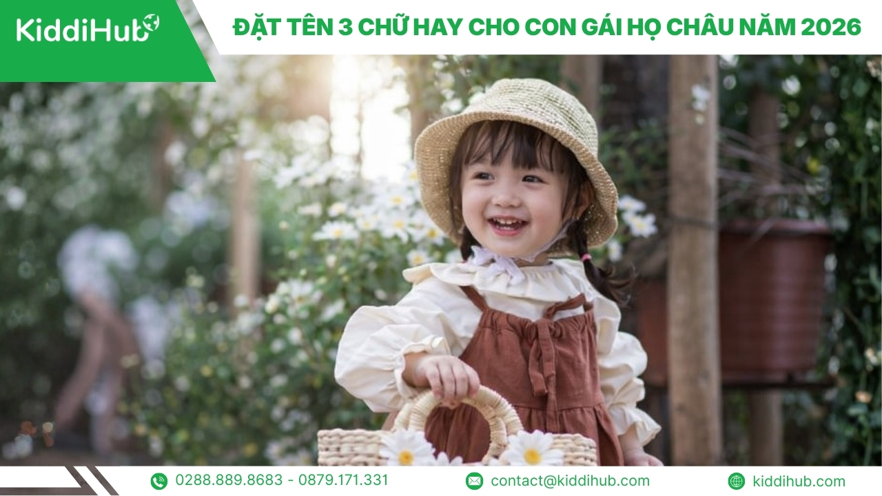 Việc đặt tên con gái họ châu năm 2026 cần chú trọng mệnh Thiên Hà Thủy để mang lại may mắn, bình an và thành đạt. Từ nguyên tắc phong thủy đến hơn 200 gợi ý tên hay như Châu Minh Anh hay Châu Bảo An Nhiên, hy vọng bạn tìm được lựa chọn lý tưởng nhé! Cùng theo dõi để khám phá thêm bài viết về các chủ đề cách đặt tên con, chăm sóc bé và phong thủy gia đình của Kiddihub.