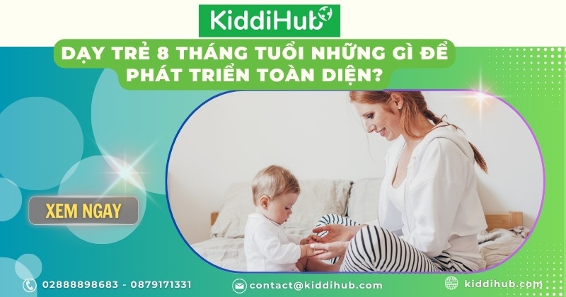 Dạy trẻ 8 tháng tuổi những gì là câu hỏi phổ biến của các bậc phụ huynh. Khi nuôi dạy trẻ 8 tháng tuổi, cha mẹ cần chú trọng phát triển khả năng vận động, tư duy và giao tiếp cho bé, giúp bé hình thành các kỹ năng cơ bản và khám phá thế giới xung quanh. Bằng cách kết hợp các trò chơi thú vị, tương tác thường xuyên và chế độ dinh dưỡng hợp lý, bé sẽ phát triển toàn diện và khỏe mạnh. Nếu các bạn còn điều gì thắc mắc vui lòng liên hệ KiddiHub để biết thêm thông tin nhé!