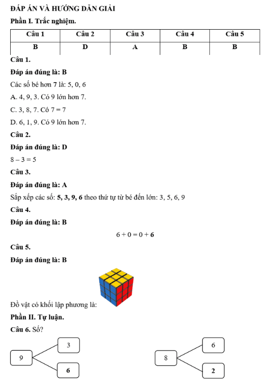 Đề số 1 - Đề minh họa ôn tập Toán lớp 1 học kỳ 1
