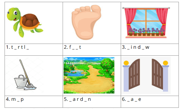 Dựa vào hình ảnh, điền chữ cái còn thiếu để hoàn chỉnh từ:
