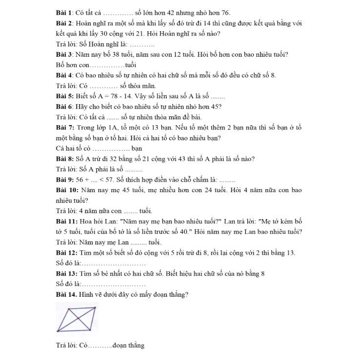 Câu 6: Năm nay Lan 7 tuổi, em Mai 4 tuổi, mẹ 35 tuổi. Hỏi sau mấy năm nữa thì tổng số tuổi của Lan và Mai bằng số tuổi hiện nay của mẹ?