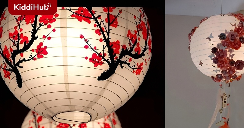 Những mẫu lồng đèn trang trí Tết bằng giấy, đặc biệt là kiểu dáng tròn truyền thống, luôn mang đến cảm giác gần gũi và dễ dàng biến tấu theo nhiều phong cách khác nhau. Với nền giấy mỏng nhẹ, bạn có thể thỏa sức trang trí bằng cách vẽ tay hoa đào, hoa mai, họa tiết Tết cổ truyền hoặc gắn thêm các chi tiết hoa nổi 3D, hoa làm từ giấy nhún hay giấy báo tái chế.