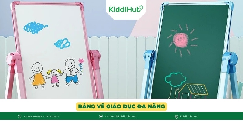Trẻ em trong độ tuổi mầm non rất hiếu động và có sự tò mò mãnh liệt với thế giới xung quanh. Việc trẻ vẽ lại những hình ảnh mình tưởng tượng hoặc quan sát thấy là điều rất tự nhiên. Vì vậy, bảng vẽ giáo dục đa năng là đồ chơi học tập cho trẻ mầm non tuyệt vời để giúp trẻ thỏa sức sáng tạo. Sản phẩm có hai mặt sử dụng, trẻ có thể vẽ bằng bút lông hoặc phấn.