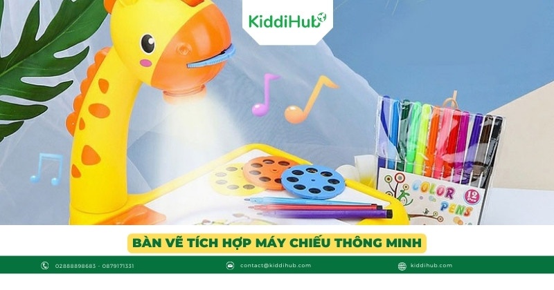 Món đồ chơi học tập cho trẻ mầm non này gồm hai phần chính: bàn học và máy chiếu, dùng để chiếu hình ảnh lên mặt bàn, giúp trẻ tự do vẽ hoặc sáng tạo theo sở thích.