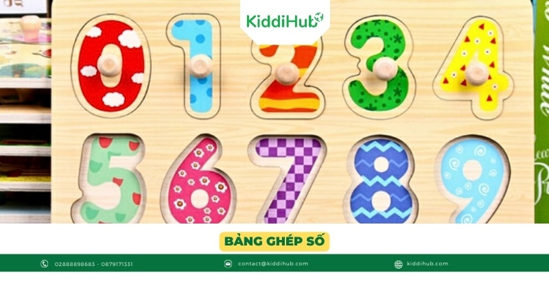 Bảng ghép số được làm từ gỗ, giúp trẻ học và chơi hiệu quả qua các trò chơi ghép hình chữ cái, số đếm, hoa quả và động vật.