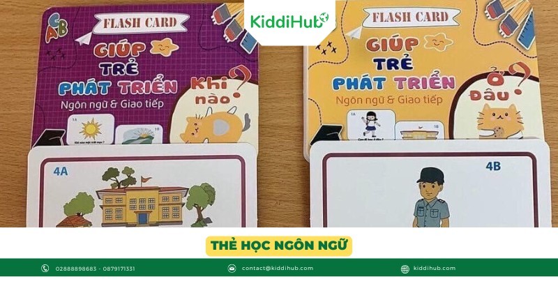 Cách chơi: Bố mẹ giải thích từng thẻ cho trẻ hiểu và ghi nhớ nội dung, sau đó trẻ tự học và giao tiếp qua các câu hỏi, câu giao tiếp hàng ngày.