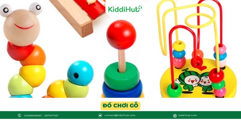 Đồ chơi gỗ được thiết kế với các khối hình đa dạng, giúp trẻ nhận dạng các hình khối và màu sắc, đồng thời phát triển tư duy và vận động.