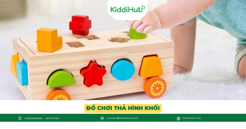 Cách chơi: Trẻ chọn các khối hình và thả vào lỗ tương ứng trên hộp.