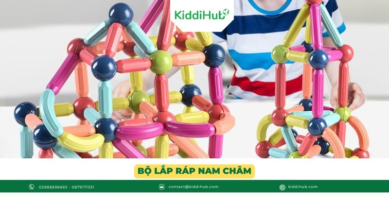 Sản phẩm gồm các thanh nam châm và khớp nối, giúp trẻ sáng tạo các mô hình và công trình khác nhau.