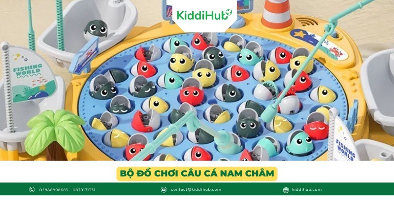 Cách chơi: Trẻ sử dụng cần câu để bắt cá bằng nam châm, thử thách sự tập trung và kỹ năng vận động.
