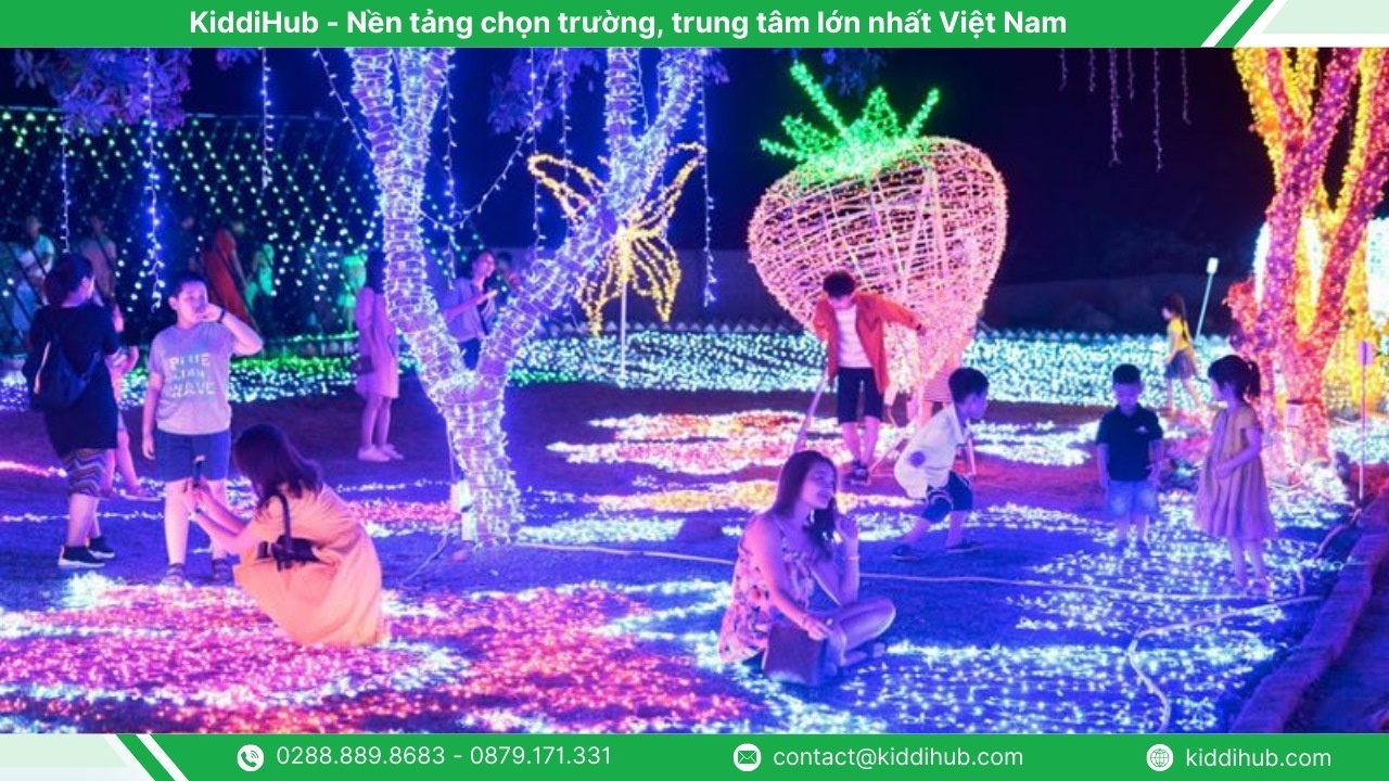 Buổi tối tại Mộc Châu trở nên đặc biệt hơn khi bạn ghé thăm Công viên ánh sáng Pha Luông. Đây là điểm dừng chân hấp dẫn trong hành trình du lịch Mộc Châu Tết Tây, với không gian trang trí hàng loạt mô hình ánh sáng ấn tượng như con đường ánh sáng, mặt trăng phát sáng, tháp Eiffel mini hay quả cầu ánh sáng. Khi đèn bật lên, cả khuôn viên trở nên huyền ảo, mang đến trải nghiệm vui chơi và check-in độc đáo cho du khách trong dịp du xuân.