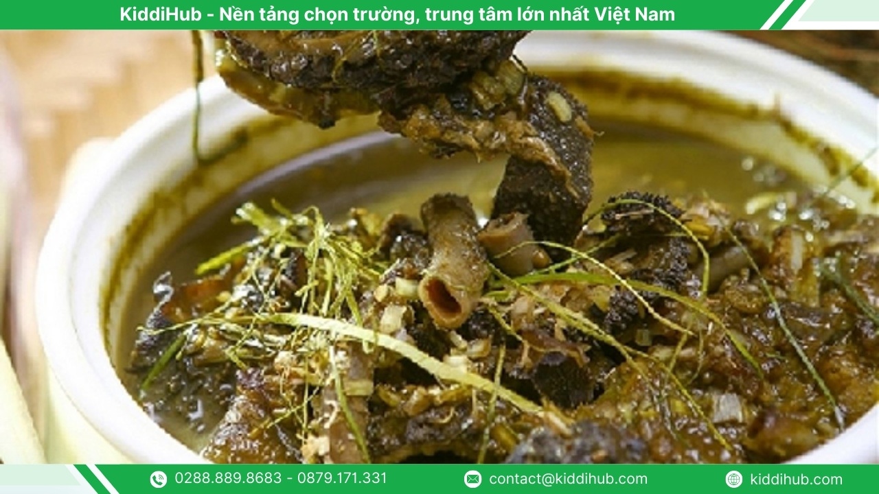 Nậm pịa là món ăn truyền thống độc đáo của người Thái, được nấu từ tiết, lòng, dạ dày và phần pịa trong ruột non bò hoặc dê. Món có mùi hơi nồng nhưng lại là đặc sản “gây nghiện” với người dân bản địa, thường ăn kèm hoa chuối và lá bạc hà để tăng hương vị.